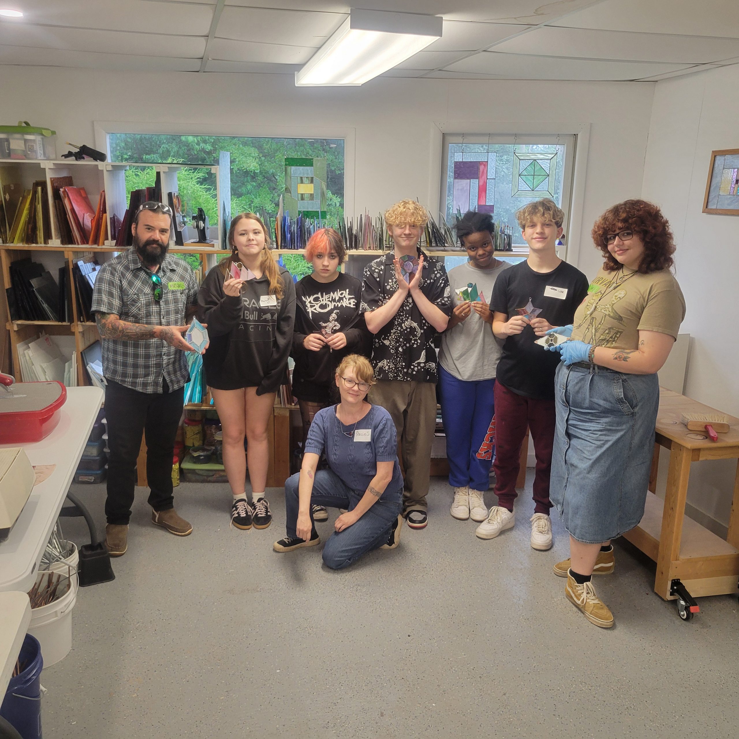 Some of the most meaningful parts of ESSA’s Young Artist Program happen in moments that cannot be planned. During Brynna Mollahan’s Intro to Small Metals workshop in April, a foreign exchange student worked alongside local students, sharing in the experience of learning a new craft together. In the Clear Springs School Stained Glass two-day workshop taught by Stacie Primeaux, students took full ownership of their projects by designing their own pieces and creating original patterns before cutting and assembling glass.