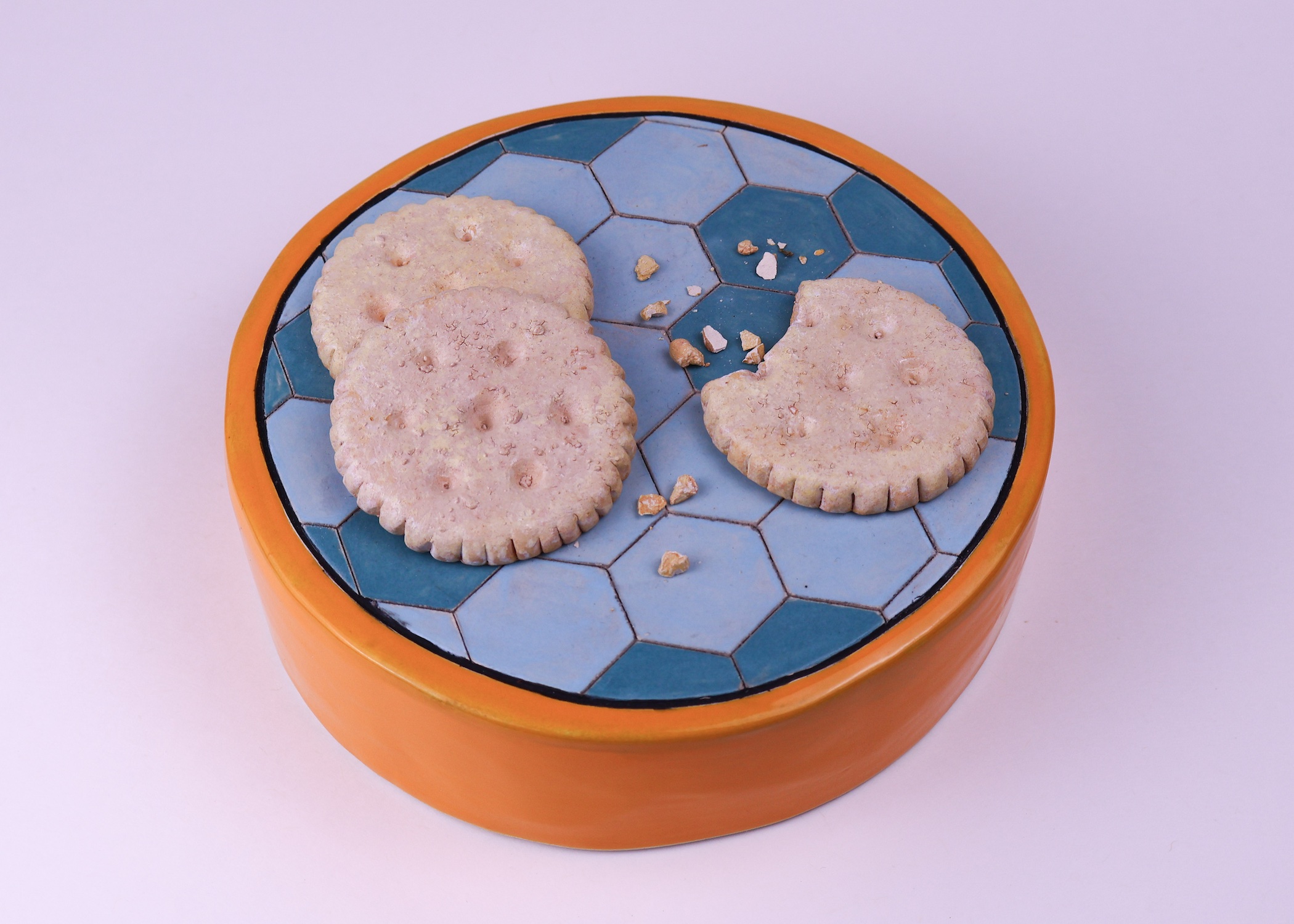 Erin Harris is a ceramic artist and educator based in Oklahoma City whose playful sculptures transform everyday foods into delightful ceramic pieces inspired by human connection and the nostalgia of shared meals. Alongside her studio practice, she is active in arts education, sharing her love for ceramics with students in the local community.